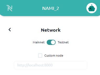 By default, the Nami wallet is connected to the main-net so you need to switch it to the test-net. Go to the Nami wallet, click on the Avatar (the left-right corner) and click on the Settings button.